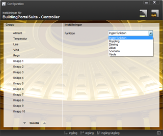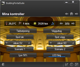 Controller för BuildingPortalSuite är ett kompakt och smidigt program för PC som styr och kontrollerar de allra vanligaste funktionerna i ditt KNX-system. Det är ett program som lätt kan läggas som en åtkomlig genväg på windows-skrivbordet.
